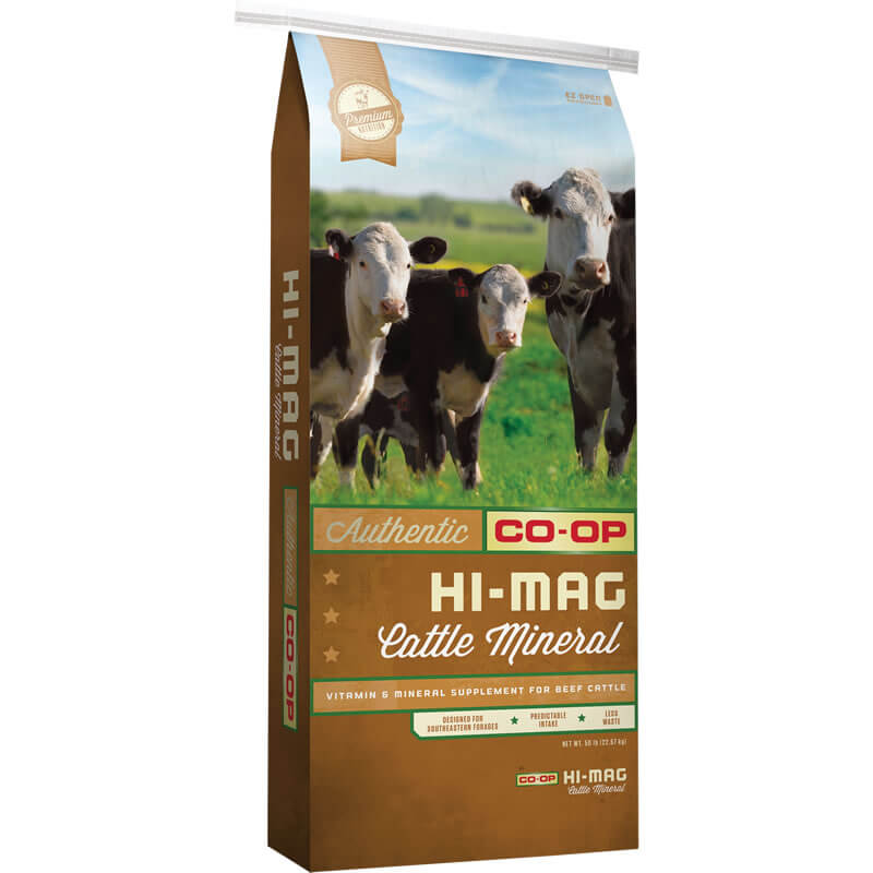 Co-op Foundation Hi-Mag Cattle Mineral is formulated to supplement weaned cattle during grass tetany season. Feed free-choice when cattle are on lush grass or small grain pastures